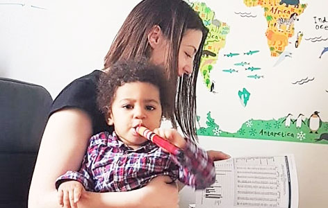 Antigona Ulndreaj, gradute student in Michael Fehlings Lab at the Krembil Research Institute, reading through papers while caring for her toddler.