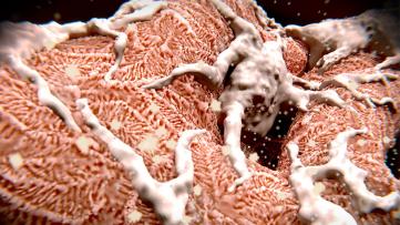 Kidneys filter the blood—removing waste and balancing fluids. Within the kidney, this filtering is done through networks of looping capillaries (tiny blood vessels), called glomeruli. Specialized cells called podocytes then wrap around these blood vessels using cellular projections called foot processes that branch from the main cell.